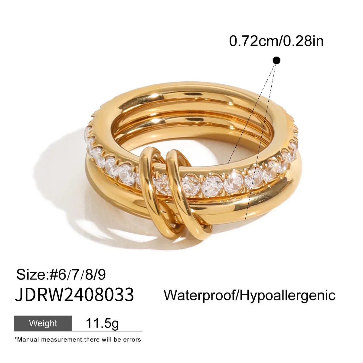Elegant and refined, this minimalist double-layer ring features a glossy finish with sparkling white cubic zirconia inlays. Waterproof and stylish, it’s a perfect gift that combines modern simplicity with lasting brilliance.