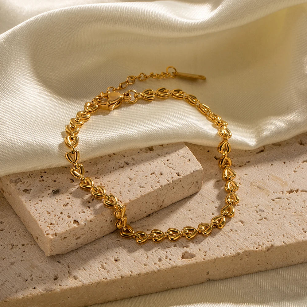 The Hollow Heart Braided Bracelet blends warmth and elegance with a touch of romance. Featuring a finely braided band and a minimalist hollow heart charm, this piece is plated in radiant 18k gold color for a timeless glow. Lightweight and adjustable, it's perfect for everyday wear or as a thoughtful gift for someone special.
