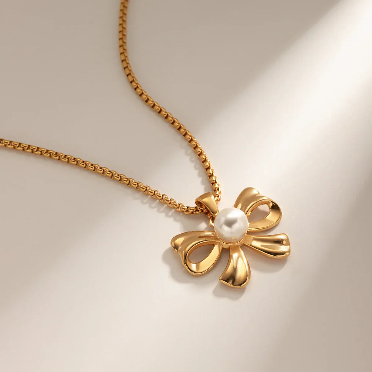 Elevate your accessory game with this exquisite Bow Inlaid Pearl Hoop Earrings, Ring, and Necklace Set for women. Each piece is designed with a touch of elegance, featuring a charming bow motif that beautifully complements the lustrous pearls. This tarnish-free fashion jewelry set is perfect for any occasion, adding a sophisticated flair to both casual and formal outfits. It also makes a thoughtful gift for a loved one, combining style and versatility in one stunning package. Enjoy the timeless beauty and delicate craftsmanship that this set brings to your collection!