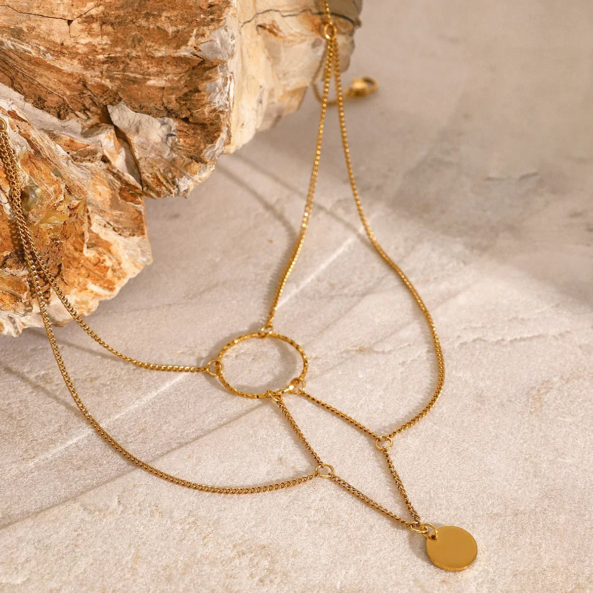 This elegant irregular geometric loop necklace exudes sophistication and charm. Its unique design features flowing, asymmetrical shapes that create a striking visual appeal, perfect for adding a touch of luxury to any outfit. Ideal for special occasions or galas, this piece enhances your elegance with its upscale look. Crafted to resist tarnishing, it promises lasting beauty, making it a perfect addition to your jewelry collection. Whether worn alone or layered with other pieces, it’s sure to make a statement!