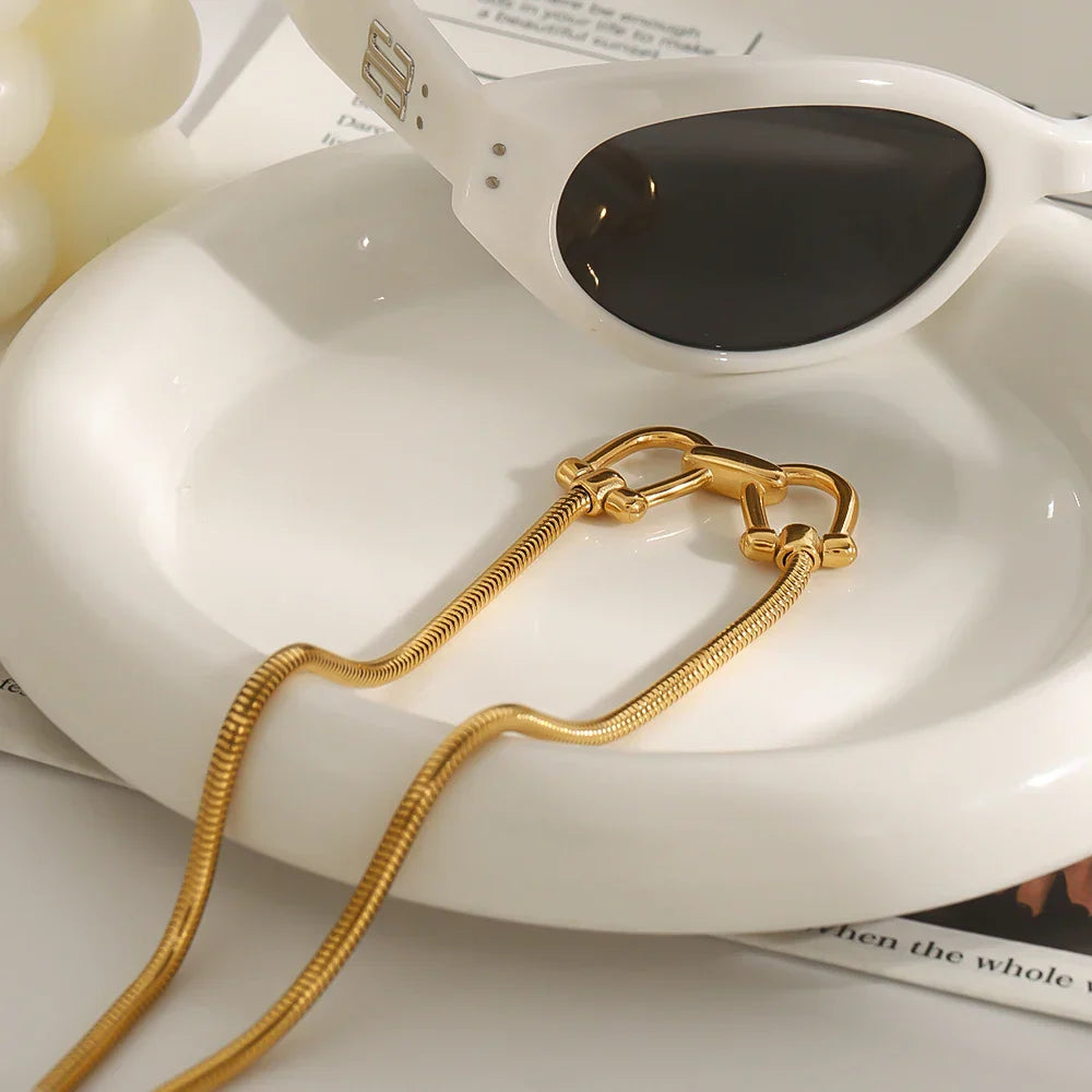 The Horseshoe Buckle Chain Necklace combines bold design with everyday durability. Featuring a sleek horseshoe-shaped buckle and a sturdy waterproof chain, this unisex piece brings luck and style together in one timeless accessory. Perfect for layering or wearing solo, it’s crafted from high-quality, tarnish-resistant materials made to withstand daily wear — rain or shine.