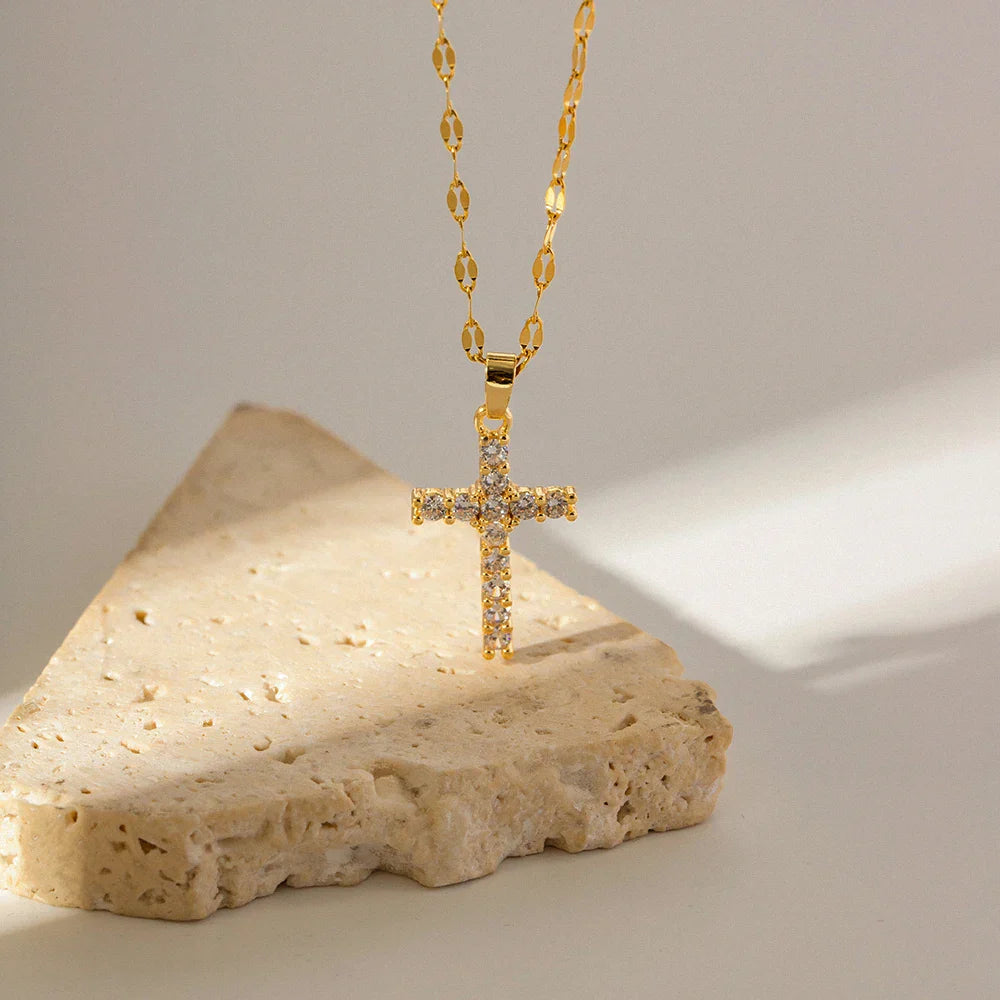 This elegant pendant necklace features a striking cross design, adorned with shimmering cubic zirconia that catches the light beautifully. Its trendy aesthetic makes it a perfect accessory for both casual and formal outfits. Designed with durability in mind, this piece is waterproof, ensuring it can withstand daily wear. A versatile addition to any jewelry collection, it also makes a thoughtful gift for special occasions or a stylish treat for yourself.