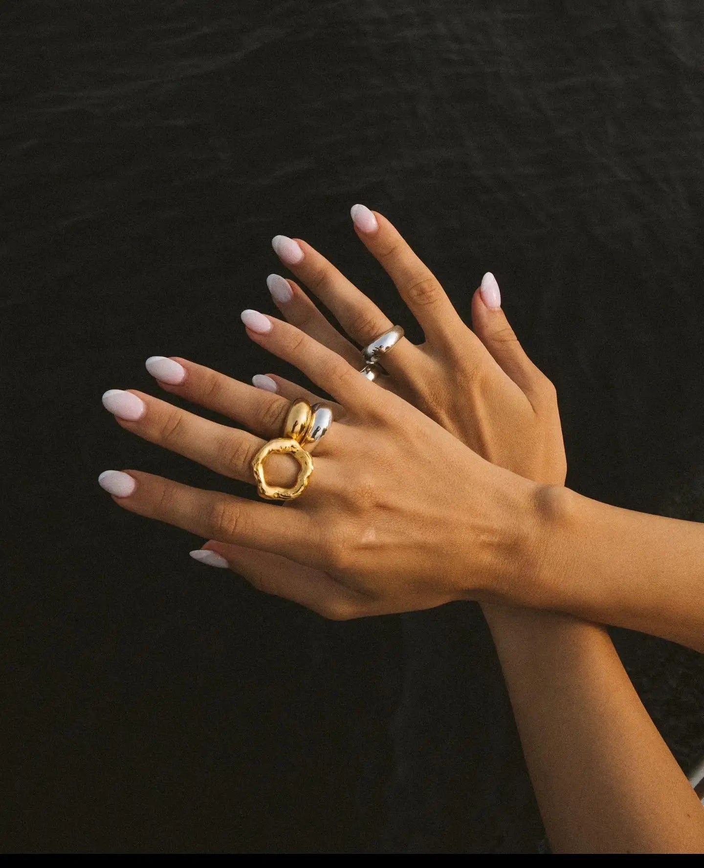 This distinctive ring showcases a unique circle motif with a striking melted texture, adding a modern and artistic touch to any look. Its gold-tone finish enhances its elegant appeal, while the waterproof design ensures durability and long-lasting shine. A perfect choice for women who appreciate stylish, sophisticated jewelry, making it an ideal gift for special occasions.