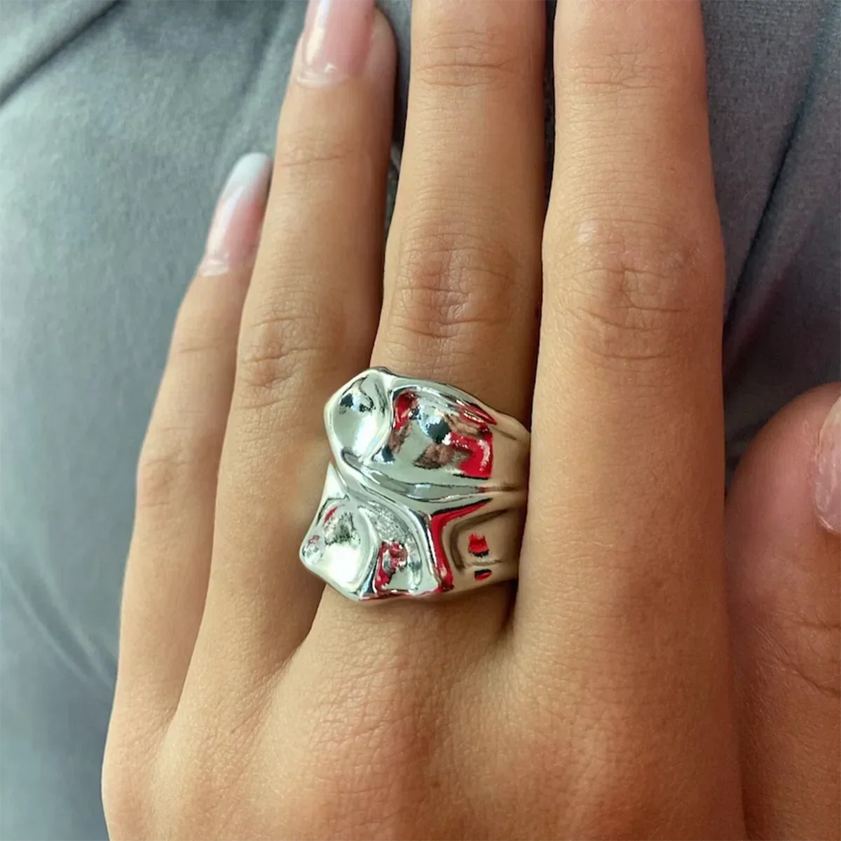 Irregular Hammered Texture Wide Opening Ring – a bold and stylish piece designed for women who love unique jewelry. Featuring an eye-catching hammered texture and an adjustable wide opening for a comfortable fit, this ring offers both elegance and versatility. Its tarnish-free finish ensures long-lasting shine and durability. Perfect for parties, casual wear, or as a thoughtful gift, this charm ring adds a modern and sophisticated touch to any outfit.
